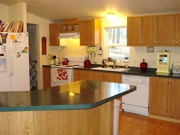 Great home, great location, great condition, great price. Manufactured home located on a double lot (lengthwise) near the school in North Portola, on the hill with nice southern views over the city to the mountains. Terraced yard with beautiful flowers and unique rockwork. Includes the shed and covered area for storage, your Ranger, or??? Garage has an oil heater, a nice workbench and a separate room for storage, crafts or toys.