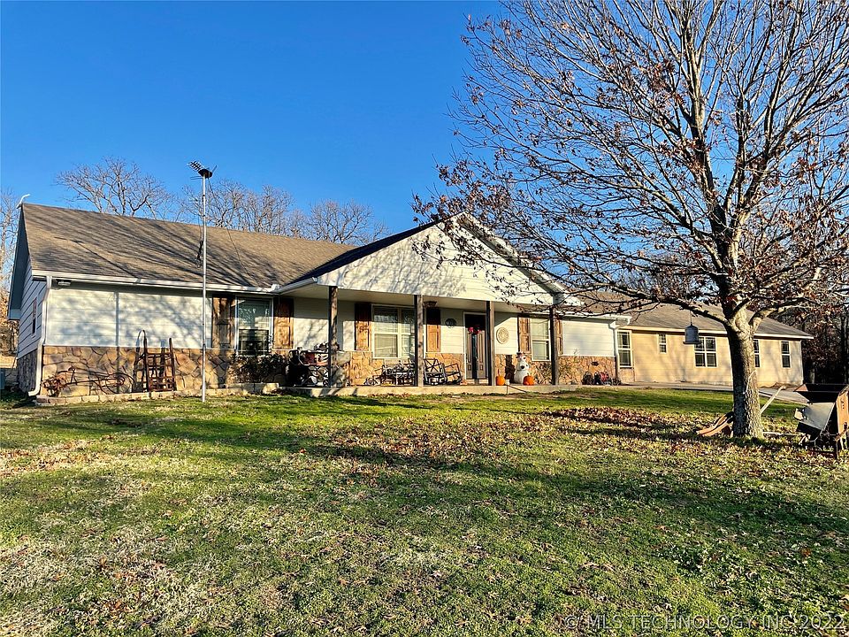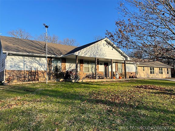 What a great property! This is a huge house with lots of bedrooms and baths for a big family. The property has 20 acres with a pipe entry and a huge shop with cover awnings on front and back for equipment storage. Located in the Roff School district.