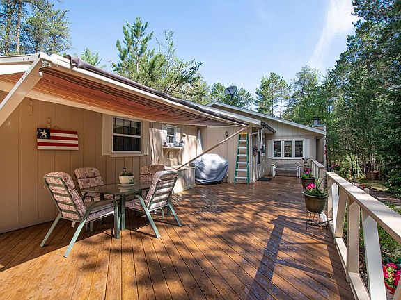It’s a RARE find in this market to find a year round, 3BR/2BA single family lake home on 2.9 acres and 200+ ft of frontage (natural/fisherman) at this price point! Although the home does not have direct views of the 270 acre lake, it does boast a great location between Eagle River and Sayner. The walking path to the full rec lake affords privacy while having the all the benefits of lake living. Everything in the house is on one level, the spacious living room has a toasty field stone fireplace and a dry bar. The kitchen and dining room have plenty of space to entertain and cook. There are 2 En Suites in the house and the 3rd bedroom for family or friends. Other notables are the 2 car drive under garage, 280 sq. ft. storage shed, gazebo and open sundeck. Call today to schedule your private showing so you can enjoy lake life all summer long and check out all the beautiful perennials. This is a hybrid home with part of the structure a mobile home with a stick built addition.