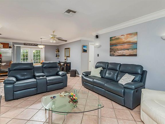 Welcome to this captivating home w/ 3 bedrooms, 2 bathrooms, & one-car garage w/ the perfect blend of comfort & waterfront serenity. Nestled along a quiet street. As you step inside, you'll be greeted by a warm & inviting atmosphere, w/ an open floor plan that seamlessly connects the living, dining, & kitchen areas. The well-appointed kitchen feat. modern appliances, ample cabinet space, and a breakfast bar, making it an ideal space for both cooking & entertaining. The master bedroom is complete with an ensuite bathroom for added privacy. Two additional bedrooms provide flexibility for an office or a guest room. The second bathroom offers both style and functionality for guests. Oversized backyard area w/ views of the tranquil water & pool. NO HOA. AC 2022. home has an above ground pool inside the ground all equipment works.