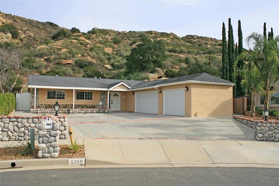 Move-in Ready Simi Valley Single Story has been Remodeled & Shows Beautifully! 4 Bedrooms, 2 Bathrooms, plus has an Oversized 3 Car Garage! Located in Desirable Neighborhood & on a Small Cul-de-sac Street with Gorgeous Mountain Views from the Backyard. Upgrades Include: Fresh Paint, Scrapped Ceilings, Dual Pane Windows, Recessed Lighting, Plush Carpeting, Travertine Floors & Updated Fixtures. Super Light & Bright Floor Plan Boasts Spacious Living Room with Travertine Noce Fireplace, Gourmet Kitchen with Granite Counter Tops, Stainless Steel Appliances, Tons of Cabinet Space, Skylight & Huge Eating Area. Master Bedroom has Large Mirrored Wardrobe Closet & Remolded Master Bath with Granite Vanity. Ample Sized Secondary Bedrooms with Mirrored Wardrobes, Plus one with Wood Laminate Floors & Side Access Door-Perfect for Home Office or? Hall Bath Also Updated with Granite Vanity & Reglazed Tub. Private Rear Yard with Large Gated Side Yard, Patio Slab, Grassy Area & Beautiful Mountain Views. Additional Amenities Include: Central Air & Heat, Huge Laundry Room, Direct Access 3+ Car Garage with indoor Boat/RV Area, Storage Area, Security System, 2 Inch Blinds & So Much More!