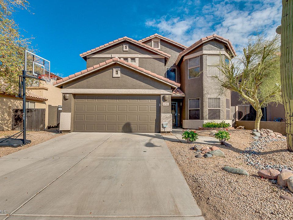 This 5 bedroom home is meticulously kept & boasts numerous upgrades! Full bedroom & bathroom downstairs & four additional rooms upstairs. The kitchen has beautiful cabinets with silver finish hardware, granite counters, stainless steel appliances, gas range & updated lighting. The family room has soaring ceilings that really open the room & allow you to enjoy the beautiful oasis backyard & MOUNTAIN views & ranges in EVERY direction! The back patio is the full length of the home & has pavers down the entire length. A grassy backyard borders the pool area that has a pebble tec DIVING pool & stunning beehive outdoor fireplace. The spacious master has a sitting room & vaulted ceilings. Updated master bathroom w/ new lighting & fixtures.