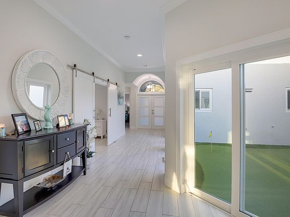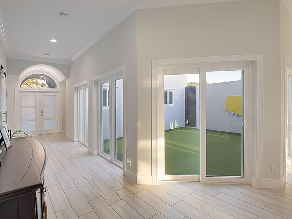 Nestled in a serene enclave, this meticulously crafted home boasts modern luxury living with premium amenities. Impact windows and a full-house natural gas generator ensure comfort and safety. The redesigned pool area features a pristine pool and a putting green in the atrium.Updated kitchen and bathrooms offer sleek finishes, white tile flooring throughout enhances the contemporary feel. With picturesque golf course views, this home blends indoor and outdoor living seamlessly, providing a sanctuary for modern living.