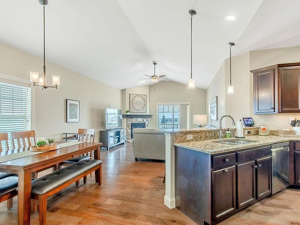 Gorgeous ranch-style condominium home in the heart of DeForest?s sought after Conservancy Commons neighborhood, close to Conservancy Commons Park, the Upper Yahara River Trail, and community splash pad. The expansive open layout with vaulted ceilings provides a great flow for entertaining and socializing. Relax at the end of the day in your private bedroom with a full ensuite bath and walk-in closet. 3 bedrooms PLUS a home office grant you tons of space and make working from home easy. You?ll love the finished lower level with a family room, full bathroom, and bedroom, perfect for hosting overnight guests. Spend sunny days on your deck overlooking green space with walking trails. Luxurious designer finishes throughout; 2-car, attached garage. Unparalleled location and opportunity!