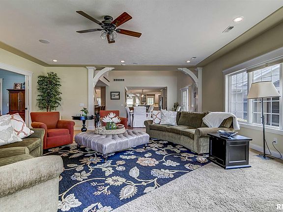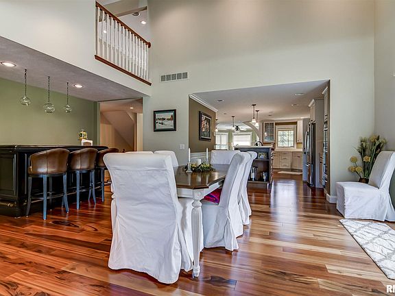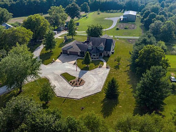 EXECUTIVE STYLE home on 5 acres, city water, Chatham address and New Berlin Schools with large outbuilding has something for everyone. Home features 3-4 bedrooms, 3 bathrooms, partial finished basement with 3 car attached garage, main floor master bedroom, custom chef's kitchen with dual wall oven, stainless appliances, solid surface counter top, wood floors, and 2 bedrooms upstairs with bonus room. The outside features built in fireplace and stone patio, enclosed screen room, and outbuilding with heated floor, additional kitchen and loft. Pre-inspected by B-Safe.