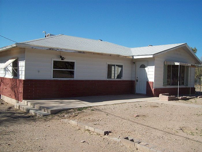 Ceiling fans, AC, gas heat, water well, septic tank, open wood kitchen cabinets, gas range, SS sink, gas water heater, carpet, ceramic tile and wood laminate flooring, built in dresser drawers in bedroom 2, shingle roof, fully fenced, 1 car detached garage and workshop, front patio with motion detector lighting, window awnings, front security door and mesquite trees for shade