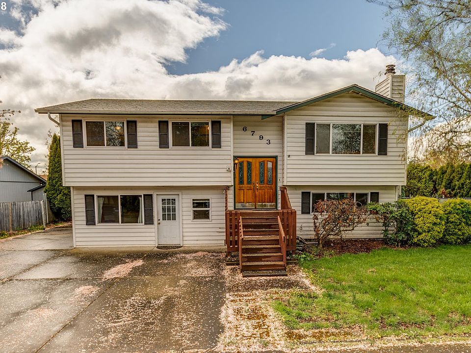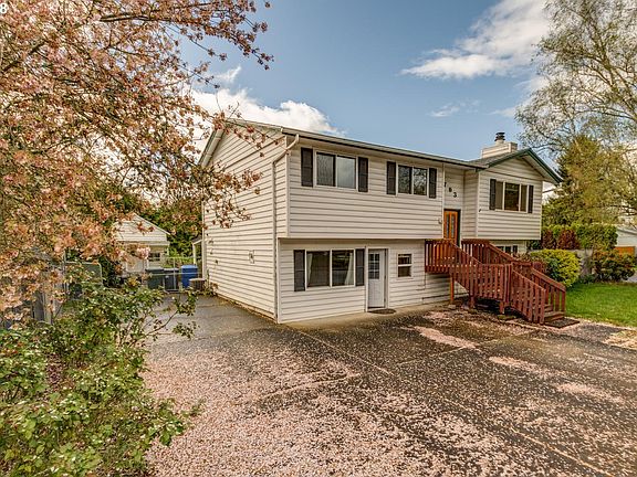 This home is perfect for large families with it's dual living set up. 6 bedrooms plus an office w/ a kitchen and family room on each floor. Fireplace, AC, and vinyl windows throughout make the home cozy all year round. The large corner lot has RV parking w/ electric hookup, deck, and fenced yard. Located with easy access to I-5 this home is a must see.