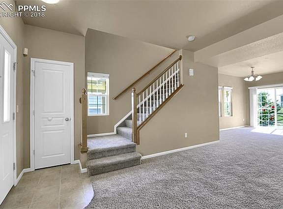 Backs to open space, lots of walking trails in the area to include one directly behind the house. Great Pikes Peak and mountain views from the neighborhood. Open floorplan with beautifully upgraded hickory cabinets. The master bedroom boasts a vaulted ceiling and a huge walk-in closet and 5 pc bathroom. Laundry facilities on the upper level make laundry a simple process. Metro District fee also includes Falcon Broadband Basic Internet. Check this beauty out today, a definite must see!