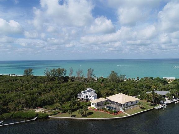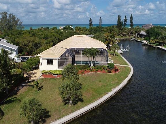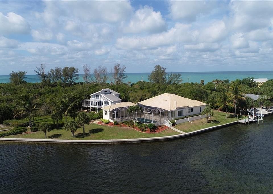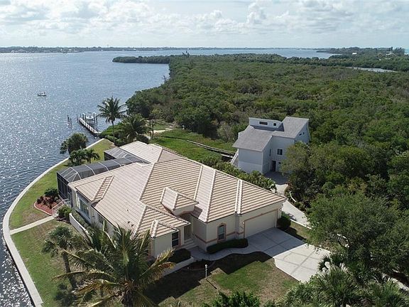 An endless horizon over the bay bestows a blended lifestyle of island calm and water-loving adventure from this well-positioned home. Featuring a spacious residence, relaxing pool and guesthouse, this property exceeds expectations of fitting all your lifestyle preferences. High ceilings and tile floors are a brilliant stage with the bay acting as a stunning backdrop through expansive windows and sliders to fashion the interiors any way you like. The great room floorplan allows for cozy spots to unwind, large gathering spaces for entertaining, and easy access throughout. Experience 180-degree views and the charm of a fireplace within the family room, setting the tone for appreciating the waterfront way of life. The custom kitchen offers abundant solid wood cabinetry, built-in double oven with warming tray, and countertop space with a sizable island for creating feasts for any occasion. Whether working from home or a quiet retreat for completing tasks, the study includes a custom desk and built-ins to keep things organized. The screened lanai beckons long weekends splashing in the 34-foot pool and heated spa and tranquil evenings overlooking the water as flames flicker from the built-in fire pit. Ideal for the multi-general family or frequent visitors, the guesthouse is as peaceful and pristine as an island retreat can get, boasting a fully equipped eat-in kitchen and water views. Come home with pride after cruising the waterways when you park your boat at your protected Trex dock with lift and 350-foot seawall. Completing the picture of perfection is maintained landscaping with mature fruit trees and palms. Welcome to the best days of your life.