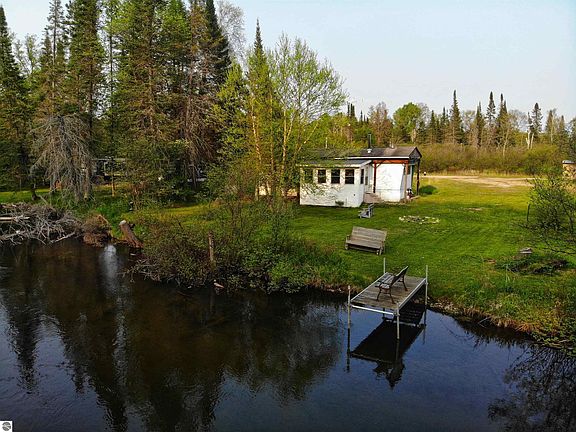 Manistee River Frontage in Kalkaska County means - Blue Ribbon quality fishing! 193' of Manistee River Frontage just down stream from the CCC bridge. Coyote Camp has been a trout bum hang out for decades. The brown trout are big, the brookies are colorful and occasionally you will see a flamboyant rainbow here. An oversized 2 car garage is ideal storage for your riverboat, SxS, ATV's, snowmobiles and up north vehicle. Coyote Camp is snuggled amongst thousands of acres of state land and state trails. You won't want to miss out on this property. Wood Ducks, Hooded Mergansers, Eagles and Canada Geese frequent the waters. Deer and the occasional black bear can be see foraging along the river banks as you gently float from the CCC bridge to your new place on the river. Trout bums, Kayakers, Canoes, nature watchers and hunters will call this place heaven. Come and take a look at your Up North destination ASAP, Immediate Occupancy. You can be here before the hatch!