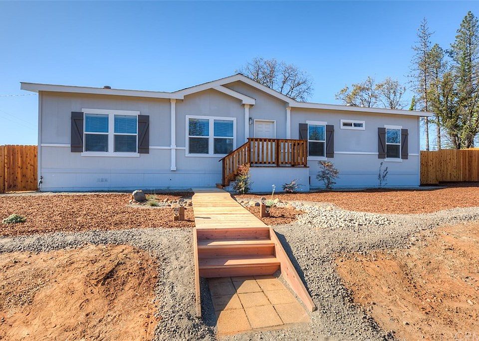 Welcome home...to this BRAND NEW 3BD**, 2BA manufactured home with ALL the bells & whistles! This home offers a wonderful open floor plan & convenient split bedroom plan. Lots of upgraded features including 2x6 walls, extra insulation, central AC, 9' ceilings & window blinds throughout, Energy Star appliances, 2 walk-in closets & indoor laundry w/mud room area, WUI compliant (Wildfire Urban Interface), Redwood decks, fully fenced, detached 2-car garage w/16' roll-up door on concrete foundation, low maintenance landscape. The light, bright kitchen offers craftsman, shaker-style cabinets (the face frames & doors are solid wood), gas cook stove, farm-style sink, large dining area & walk-in pantry. The bedrooms are nice sized; master bedroom offers the popular barn doors & beautiful en suite complete w/stand alone tub, walk-in tile shower, dual sink vanity & lots of cabinets for storage. Nicely situated on a quiet corner lot w/lots of standing homes nearby. **Property has 2BD septic system but fully functions as a 3BD, Buyer(s) to verify to their satisfaction**
