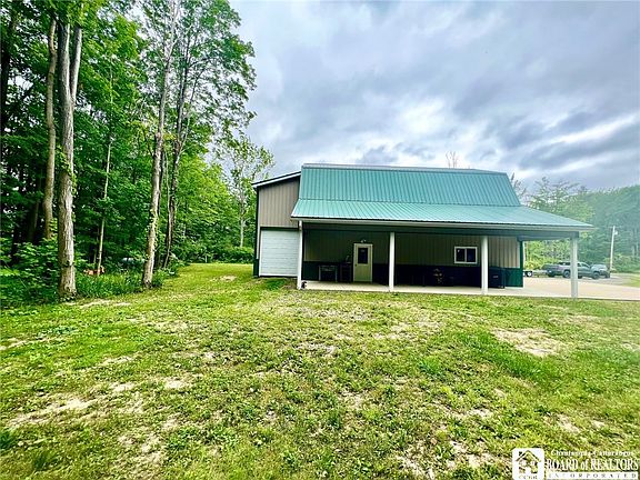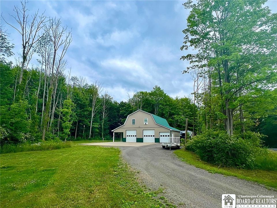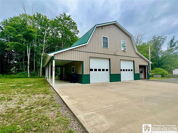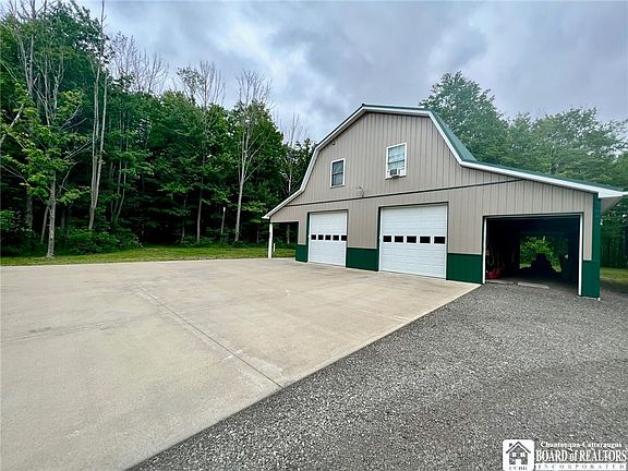 If you're looking for privacy and/or you're an outdoor enthusiast, then this is the home for you!! It's located along the Rails to Trails (tourchautauqua.com) where you can hike, bike, and snowmobile, and is only 6 miles to Lake Erie (Barcelona Harbor) and 5 miles to Chautauqua Lake. This updated 2 bedroom and 1 bath home is located above a 32x40 garage. There is an additional room that was recently added that could be finished as an office, bedroom, or bunkhouse and there is a lot of extra storage space. The garage is fully insulated and has 2 large bays, heat, and a utility sink. There is an 8x40 covered patio, a 12x40 lean-to with a garage door at each end, and a recently added 22x40 garage bay. Plenty of room for a workshop and to store all of your recreational vehicles. There's an additional .37 parcel included (211.00-1-1) bringing the total acreage to 2.17 (taxes $120). Taxes are based on the property pre-build. Delayed showings until Sunday 6/25 @ 10:00.