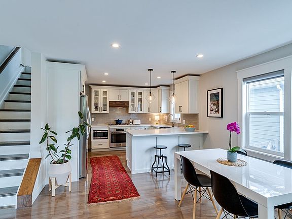 - Features: Counter Bar, Eat-in Kitchen, Gourmet, Quartz Counters, Walkout, Wood Cabinets, Wood Floor