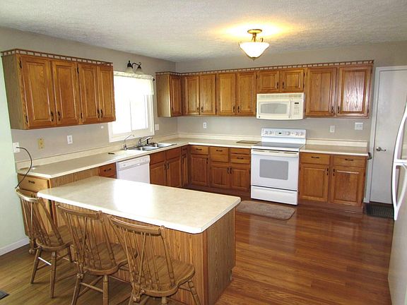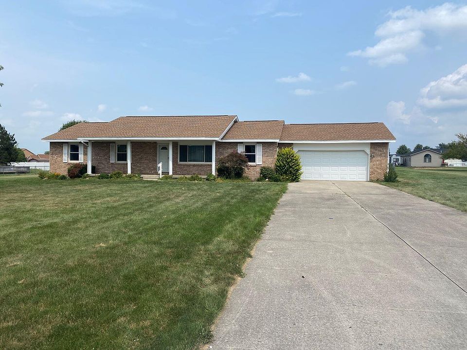 Nice 3 bedroom, 2 bath ranch, with an attached 2 car garage, & a detached 1 car detached garage. Interior features an owner's suite with full bath, formal dining room, spacious kitchen with eating bar, formal living room, den area with gas fireplace, washer, dryer, range, microwave, & dishwasher. The exterior features a fenced in backyard, front porch, deck, and new roof!