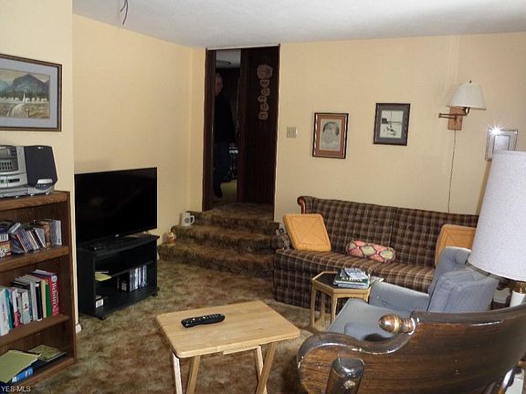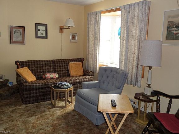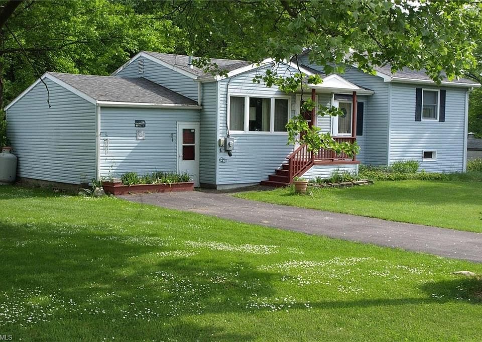 Ideal vacation ranch home. 8 lots from Pymatuning Lake for fisherman, boaters, swimmers. Three Brs., 1.5 Baths, huge LR - DR combo with gas woodburner. Galley Kit. with stove & frig. Lrg. covered deck, patio. View of park woods. As-Is condition. Propane grill stays.