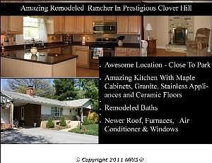 Amazing 3BR, 3BA remodeled rancher on .46 ac lot in Clover Hill, Frederick's premier neighborhood. Huge eat-in kit w/peninsula island, 42" maple cabs, granite counters & ceramic backsplash & floors, hardwoods throughout rest of main lvl including formal LR 2/wood FP, MBR w/remodeled priv bath, 2 more lg BR's. Fin low lvl w/FR w/2nd wood FP plus lots of storage! No HOA, No City Tax! Hurry!