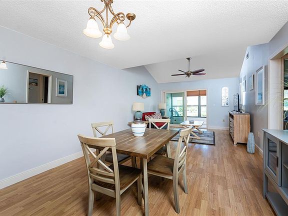 Welcome to your Florida paradise in this 55 plus, maintenance-free community. This turnkey furnished condominium boasts lots of upgrades including new roof installed in 2022, HVAC & insulation replaced in the last 3 years, a tankless hot water heater, whole house reverse osmosis system, new washer & dryer, updated kitchen and baths, $3,000 custom blackout blinds installed throughout, and an air-conditioned, enclosed lanai with new porcelain tile. The desirable open concept layout provides the perfect space for entertaining with a spacious living area featuring a 10' vaulted ceiling and sliding glass doors leading out to the air-conditioned lanai so you can easily expand your living space while staying cool. This space has ample windows equipped with custom blinds and a "buffet bar" with cabinets for storage or a place to serve your guests during dinner parties. Back inside, the updated kitchen has granite countertops, subway tile backsplash, ample wood cabinetry, an updated sink and faucet, with easy to maintain tile flooring. Conveniently located steps away from the dining area that will easily accommodate your close family and friends, and has updated laminate flooring that continues throughout the main living areas. The primary suite has a large bedroom with a built-in closet, an ensuite bath updated with granite and plenty of wood cabinetry, and the shower has tiled walls with an accent strip and dual shower heads. The guest bedroom features tile floors, a ceiling fan, roomy closet with the guest bath just steps away and offers a shower/tub combo, the same, matching tile floors, wood cabinets, granite countertop, and the added bonus of a linen closet. Lets not forget the laundry room that has additional storage space, plus a storage closet in the entry (great for your cleaning supplies and vacuum) and another one in by the guest bedroom. All this plus a storage closet and covered parking! Enjoy all the benefits and savings being located in an "X" flood zone. Take a dip in your very own community pool and meet your neighbors. Village At Wildflower is located close to the popular island of Boca Grande, shopping, fishing, golfing, restaurants and more! Don't wait, make this your home in paradise!
