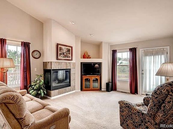 Enjoy main-level living in this rare walk-out ranch townhome, backing to open space and bike/pedestrian trail. Beautiful mountain view! Bright, vaulted, and open, great room style floorplan with gas fireplace. Most carpets were replaced with solid surface flooring since photos except brand new carpet in the lower-level family room. Large kitchen with 42" uppers, large pantry, and skylight. Dining room with bay window. Main floor laundry/mudroom. 2 bedrooms and 2 bathrooms on the main level. Professionally finished walk-out basement with recreation room, 2 more bedrooms, a full bath, and lots of storage. Expanded deck with electric awning overlooks the open space. 2-car attached garage right off laundry and kitchen. An electric stairlift from the basement level can be included too. New central AC unit.