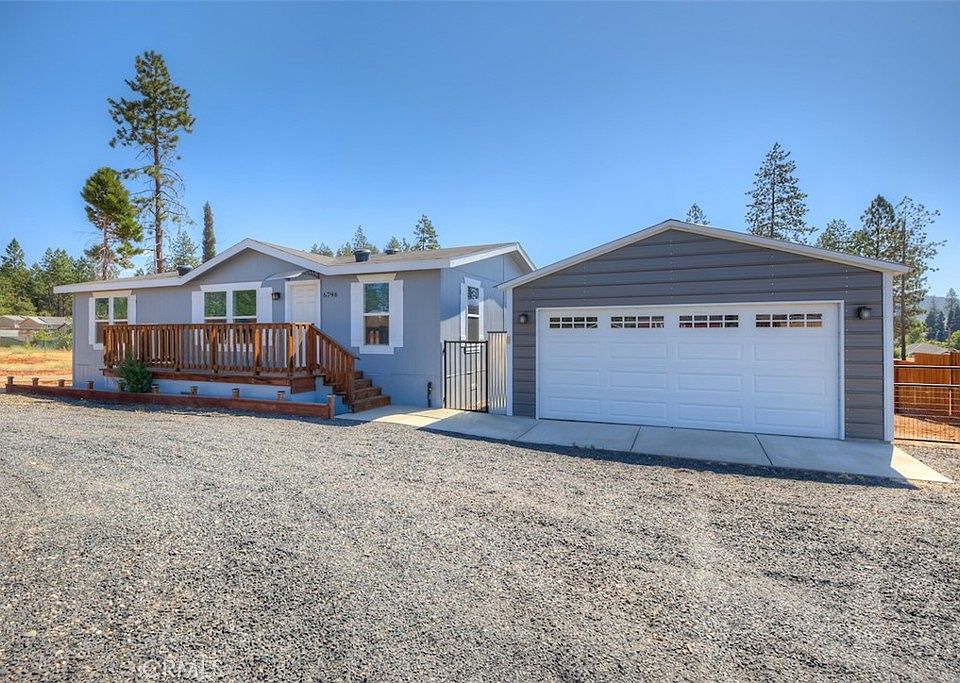 Quiet location for this 3BD**, 2BA home on low maintenance .24 acre lot! The open floor plan welcomes you with a large living room w/vaulted ceiling that opens to the eat-in kitchen & laundry area. The kitchen offers stainless steel appliances, eating bar & separate dining area. The split BD floor plan features the guest BD & BA on one side of the house & the primary BD w/primary BA on the other. The den/bonus room can be utilized as an office/hobby room/BD or anything else you may want. Additionally this property includes circle driveway, 2-car detached garage & front/rear deck. **third room does not have a door, could easily be used as a BD, Buyer is encouraged to investigate to their satisfaction
