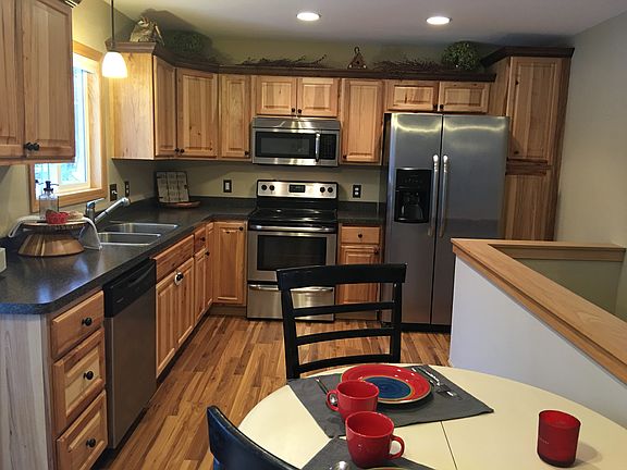 This is an immaculate home and ready to move into. Features Hickory cabinets & floors, Large Deck off eating area, 3 bedrooms on main floor, Nice wooded lot only minutes to town.