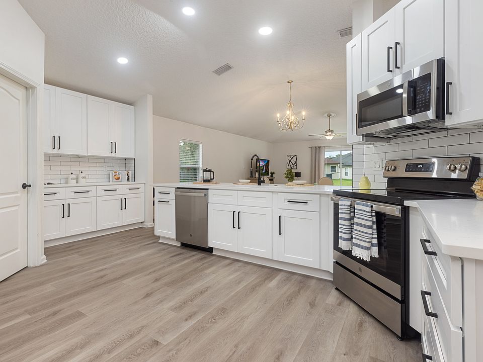 Now available for lease this beautiful spacious home with garage. Within 8 miles of NAS Jax. If you love to cook you, will love this oversized kitchen. Large backyard overlooks a tranquil pond. Enjoy the serenity of nature as you stand at your kitchen sink and watch the ducks and geese in this pond. New flooring throughout, stainless GE appliances, new interior paint, New HVAC, completely remodeled kitchen and bathrooms. Indoor laundry room adjacent to the spacious kitchen, which includes a kitchen pantry closet. The beautiful primary bedroom has a large walk-in closet. Landscaping and pest control is included with the rent. 1 year lease.