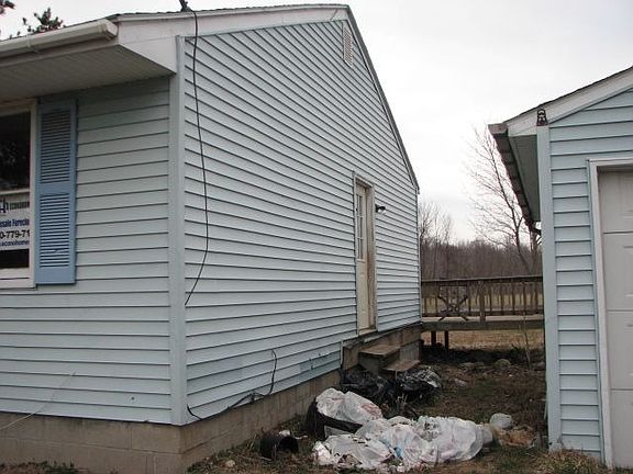 Exterior Features: Exterior is Light Blue in color. Roof is of shingle type, Yard requires mowing and maintenance, Driveway is gravel, Windows are of wood frames, Garage present, Garage needs work Interior Features: Interior needs some work, Living room in fair condition, Kitchen in excellent condition, Bedrooms need work, Bathrooms in excellent condition, Carpets or flooring need to be replaced, AC Unit found, Electric in good condition, Water Heater present, Mold present and face mask required, Well Water Service