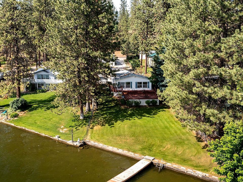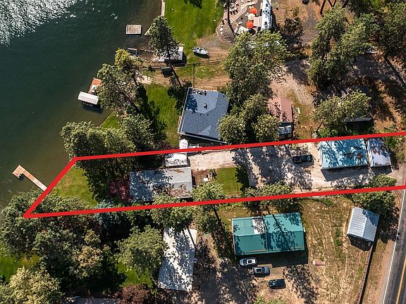 50' low bank lake front on Long Lake with Year Around access. Well maintained south facing 3 bedroom / 2 bath doublewide with huge 800 sqft deck overlooking the lake. Vaulted ceilings. Brand new carpet and paint throughout. 3rd bdrm can be a study or bedroom (no closet). Deep 0.43 acre lot. Carport, detached 380 sqft garage for a boat, plus HUGE 960 sqft detached motor home garage with 11'door and loft. Lots of uncovered parking for guests. Good size dock included. Deep lot with large grass area great for playing croquet. Title has been eliminated. ESTATE SALE