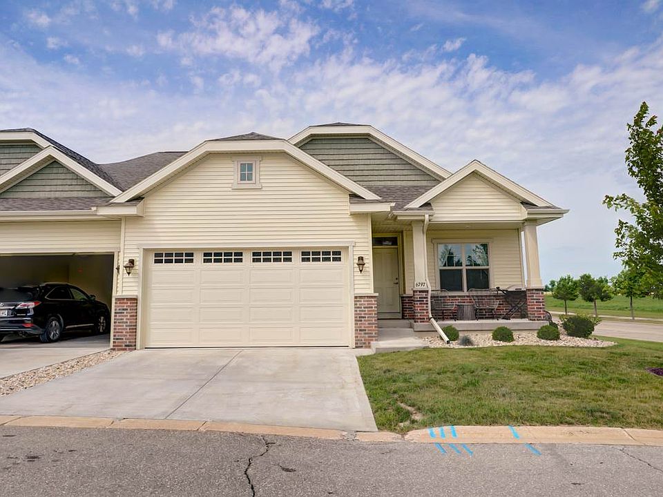 Motivated Seller-Bring us an Offer! Super conveniently located Ranch style condo (half-duplex) with beautiful wood floors, open floor plan w/vaulted ceiling great room & gas fireplace for chilly nights. Step out to your deck & relax or take a stroll to the nearby parks & trails or splash pad. Just 3 Years Old so all the gorgeous amenities you want & need (better than new!) Kitchen features granite counters, stainless appliances, breakfast bar, wine cubbies & pantry too. Owner's suite features double sink granite vanity, walk-in closet & shower. Office (currently 2nd bedroom) showcases french doors & walk-in closet. Perfect lower level family room w/room for the big screen, 3rd bedroom, den/office, full bath & plenty of storage too! Main floor laundry/mudroom also has utility sink & bench.