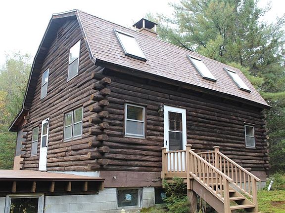 Must See this 1 Bed 1.5 Bath log cabin with attached 2 Stall garage. The garage is attached to the house so you enter through the basement which has laundry hookups. Make your way to the main floor which has the half bath and open floor plan living area. Upstairs there is a landing which would make a great office area, a bedroom, and a full bath. Home heats with fuel oil & has a well/septic. Schedule your showing today. Home heats with fuel oil.