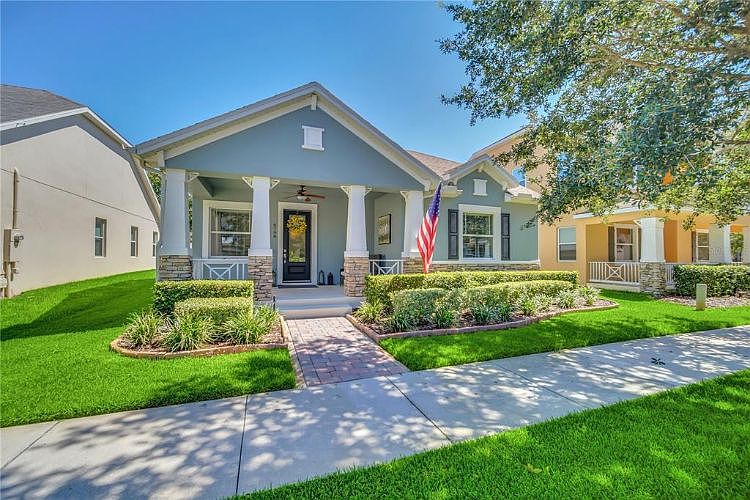 Welcome to the small quaint neighborhood of Preston Square, one of the best kept secrets of Windermere. Step into this immaculate, exceptionally maintained home. Pride of ownership is in every detail, beautifully decorated with an artist eye and attention to detail. This one owner home has been lived in with love and respect. Engineered hardwood floors in living areas, wet areas have beautiful porcelain tile. 10 ft high ceilings , crown modeling trough out the home. Kitchen with 42 " wood cabinets, granite countertops, under the counter water filtration system supplies clean, fresh water to the faucet. Kitchen and breakfast area open to the family room and access to the private screened lanai complete with pavers and plant watering system. The Owners suite lies Discretely off the family room, providing a quite retreat, Tray ceiling, spacious custom walk in closets with automatic lighting when entered. The well appointed on-suite features separate vanities, granite counters, garden tub, large shower and water closet. Bedrooms 2 3 are to the right of the family room and dinning room. A lovely vestibule welcomes you to the bedrooms and bath. Bedroom 3 is exceptional, versatile room, with a custom built-in murphy bed and book case, this room can be used as a bedroom or office and guest room. The home features solar electric system allowing you to reduce your reliance on and energy consumption. This system is leased and works IN conjunction with Duke energy consortium. The lease and agreement are transferable to the new owner. ADT is the security provider. Words nor pictures convey the beauty and warmth of this home.