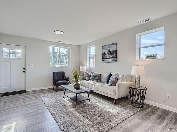 Step into this fully remodeled, single-level corner lot home at 6798 Irving St, Denver, Colorado, 80221, boasting 1,320 sqft of refined living space. With 4 bedrooms, 3 bathrooms, and a detached 2-car garage, plus a new driveway with 2 additional parking spots. The expansive 6,250 sqft lot is fully fenced, featuring new sprinklers and sod, and newly updated sewer line. The home also includes a new roof, decking, siding, and fresh paint. Inside, you're welcomed by a spacious living room. The kitchen is a chef’s dream with new GE stainless steel appliances, a subway tile backsplash, quartz countertops, and a peninsula, plus an adjoining dining area. Step into the luxurious master suite with a 6-foot double vanity, walk-in shower with a frameless door, custom tile, and a walk-in closet. The master suite includes direct access to the backyard and garage. NEW: A brand new door was installed in the living room, prodiving access to the backyard. Additional amenities include a 3-year-old furnace, new central air, a new water heater, updated plumbing and electrical systems, new engineered hardwood floors, and laundry hookups. Every detail has been thoughtfully addressed, with new LED lights, doors, trim, and fixtures throughout. Located in the vibrant neighborhood of Denver, you're just minutes away from local amenities, parks, and schools. Move in and enjoy your perfect new home! Due to the house being built below grade on south side, a French Drain was installed to correct any possible issues.