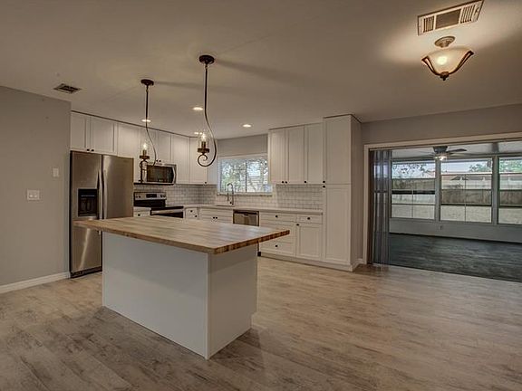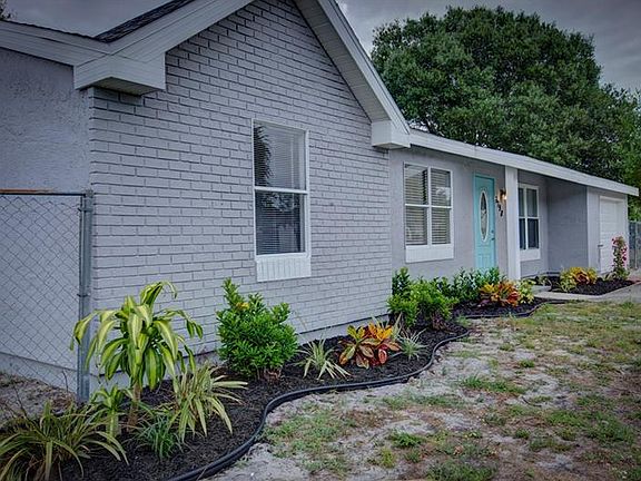 Beautiful home that been completely updated. City water and City sewer. Renovation was done with modern and contemporary touches though out. List of things that property has new: roof, hurricane proof garage door, inside doors, updated electrical panel, kitchen with 42 inch wood cabinets and quarts counter top, butcher block island, recess lighting in kitchen and living room area, premium laminate flooring thought out the main area and bedrooms, master bathroom was completely updated with new shower tile, vanities and lights, guest bathroom new bath tub and vanities, freshly painted inside and out side. Floor plan features: very open floor plan , 3 bedroom plus den, 2 bathrooms, large screen and covered Florida room. Large fenced back yard with beautiful large oaks. Beautiful new landscaping with very charming curb appeal.