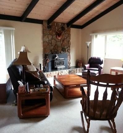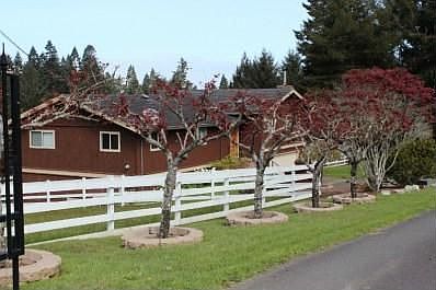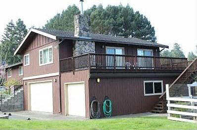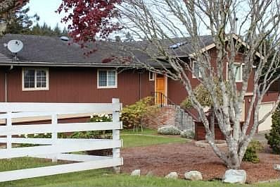 You will love living at the end of this country lane. Lots of space around you with room for garden, animals,incl. paved RV parking spot. Wrap-around deck on 2 sides. 3 garages w/1/2 bath. Nice landscaping with trees lining one side of long driveway.Outside covered area w/sink for fish cleaning,etc. Plenty of room for entertaining or raising a family.