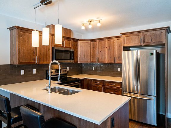 Welcome to the Ridgestone Villas Community. This 36 unit complex built in the last 3 years is located in the desirable Westgate/Upper College Heights area. Low strata fees ($188.07/month) and quality finishings make this 4 bedroom/3.5 bathroom unit a pleasure to view. This unit includes a 1 bedroom basement suite with separate entry and one of only 4 units in the complex with 9 foot ceilings in the basement. upstairs you'll enjoy a large master bedroom with walk-in closet, 2 more bedrooms and also laundry on the upper floor. A lot to like about this unit including high end appliances, single car garage and a large 10' x 12' deck. Currently rented up & down with most furniture included in the purchase price.