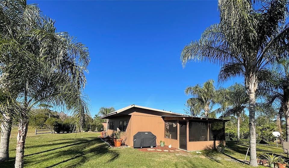 Welcome to 6799 Chad Jason Road. Imagine living among Central Florida's nature landscape under big blue sky's, viewing mesmerizing sunsets, or star gazing under night skys. Come live the life of freedom on this 5 acre retreat! Step into rustic charm and modern comfort with this 2 bedroom, 1 bath frontiersmen-style home offering a large living room and spacious screened in patio. Built with solid wood construction, double insulation, and topped with a durable metal roof. In the interior, you will find solid wood plank walls, offering a warm and inviting atmosphere that feels both timeless and cozy. The centrally located kitchen has a warm charm with its solid wood finishes and features tile backsplash, a sitting bar, seamlessly opening up to the spacious living room for easy entertaining. You could even build your dream home while you live in the existing home and create a future in-law suite. There is also a modular trailer building under a pole barn that has working HVAC when connected. The modular trailer building currently configured with a storage room on one half and 1 bedroom efficiency on the other side. You will also find a storage shed, horse or cattle stall, large covered dog kennel, and laundry room. Completely fenced with a gate at the entrance. NO HOA. No Impact fees. Easy access to tens of thousands of acres in Herky Huffman / Bull Creek WMA and Triple R Ranch from your driveway where you can enjoy wildlife viewing, hunting, hike, fishing, horseback riding, bicycling, trail riding, etc. It is truly an outdoor sportsman's paradise. Don't miss this opportunity to live the good life and enjoy your freedoms!