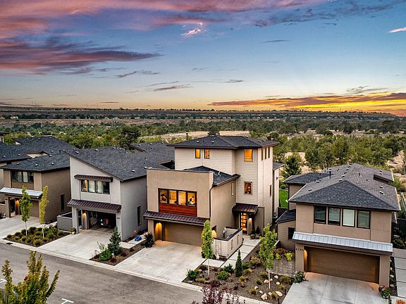 Captivating seasonal views spanning from the foothills to the twinkling city lights of Downtown Boise are the stars of this immaculate modern home. Meticulously landscaped backyard and multiple gathering spots including a glass surrounded balcony highlighting unobstructed views, set the perfect backdrop for outdoor entertaining in style! Equally impressive interior boasts a clean, neutral palette with chic designer touches at every turn. Stunning gourmet kitchen features gleaming quartz counters, 6 burner gas range and soft close drawers. Sprawling island/breakfast bar overlooks the light-filled great room accented by a striking floor to ceiling stacked stone gas fireplace. Wake to sweeping views in the idyllic master retreat featuring dual vanities, luxurious glass-enclosed shower and spacious walk-in closet. Oversized 2 car garage with shop space is ideal for the hobbyist. Enjoy the best of the East Boise lifestyle just minutes from the Boise River, Barber Park, foothill trails, local restaurants and more!