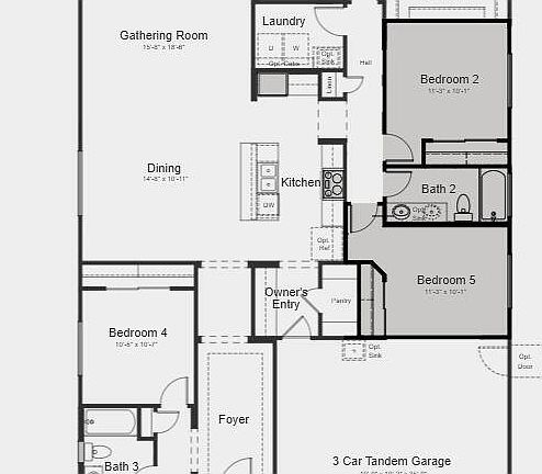 MLS#6535483 June Completion! The Sapphire offers 5 bedrooms, 3 baths, 2 car garage, and 2132 sqft of living space. Designed for entertaining, this home boasts an open concept layout with a beautifully upgraded kitchen, gathering room, dining area, and comfortable outdoor living. The foyer is a bright and airy place to welcome guests. Impressive island kitchen features a walk-in pantry. The owner's suite is tucked in the back of the home with a private bath and spacious walk-in closet. Additional upgrades include quartz countertops in kitchen, paver porch and driveway, under cabinet LED tape, SS Café gas appliances. Structural options include: Bedroom 5 in place of tandem.