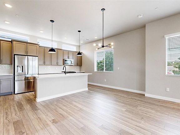 Step into comfortable, modern living at 6799 Navajo St, a beautifully updated Denver home offering both style and functionality in the desirable Midtown neighborhood. This inviting residence welcomes you with an open-concept living area featuring gleaming luxury vinyl plank floors, abundant natural light, and a cozy gas fireplace perfect for relaxing evenings. The stylish kitchen boasts grey shaker cabinets, sleek quartz countertops, stainless steel appliances including a gas range, and a spacious island that doubles as a breakfast bar – ideal for casual meals and entertaining. The bedrooms each have generous closet space, the bathrooms featuring contemporary tile work and fixtures. Upstairs, the private primary suite serves as a peaceful retreat with vaulted ceilings, a walk-in closet, and an ensuite bathroom complete with dual vanities and a spacious walk-in shower. The main floor bedroom offers versatile bonus space with another bathroom – perfect for guests or a home office. Outside, enjoy a covered porch on the ground floor, a patio up stairs, and a spacious roof top patio with mountain views! Located in a prime northwest Denver location, you're just minutes from the vibrant Tennyson Street corridor with its eclectic mix of restaurants, breweries, and boutique shops. Enjoy easy access to the Highlands, Sloan's Lake Park for walking and biking trails, and quick commutes to downtown via nearby I-25 and US-36. With its thoughtful finishes, functional layout, and unbeatable location, this move-in-ready home offers the best of Denver living – schedule your showing today before this gem is gone!