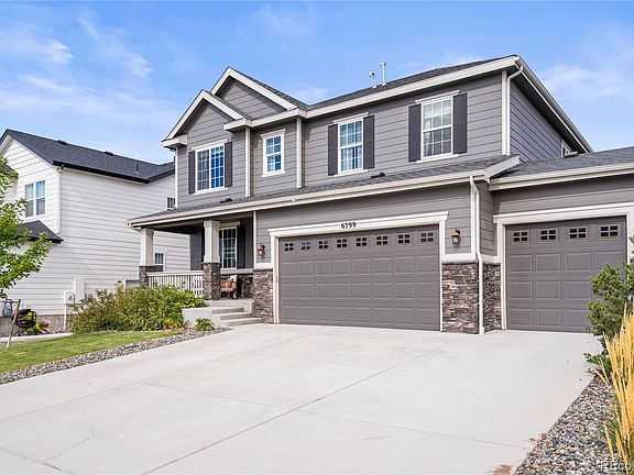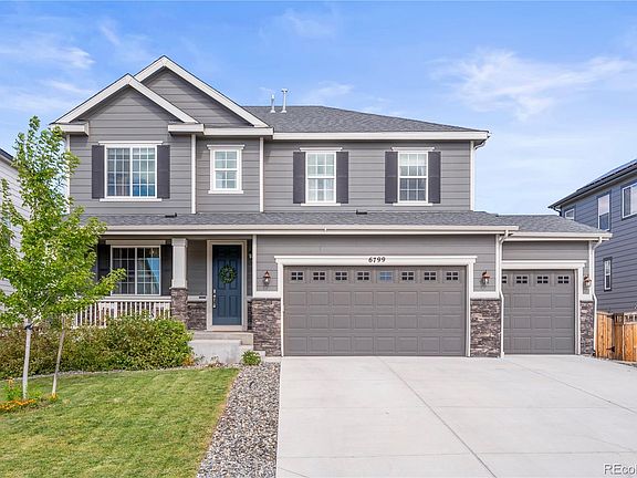 Beautiful home in the hills of Castle Rock! Welcome to this stunning four-bedroom Hemingway floorplan by Richmond American Homes, featuring the coveted dining/sunroom option. Completed in December 2020, this home offers the benefits of newer construction without the premium price or wait. Experience refined living with upgraded kitchen cabinets, elegant granite countertops, and stainless steel appliances. A spacious pantry and luxury hardwood flooring grace the main level and expansive upstairs loft, perfect for entertaining and playing. The open layout flows effortlessly to a large covered patio and flat backyard, ideal for outdoor gatherings. A versatile front flex room could serve as an office, dining, play or living area. The main floor boasts 9-foot ceilings and 8-foot doors, enhancing the home’s airy ambiance. Retreat upstairs to the exquisite primary suite, featuring crown molding, a luxurious bathroom, and a generous walk-in closet. Upstairs, three additional bedrooms, a spacious loft, and a convenient laundry room complete the second floor. The expansive unfinished basement, with 9-foot ceilings and ample windows, offers limitless potential for additional living space. Enjoy the comfort of a dual-zone HVAC system for year-round climate control.