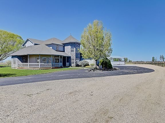 Must See! Beautiful acreage property with park like setting on Kuna/ Meridian border. Gorgeous views of Boise& Owyhee mountains, 10 acres, custom home with room to grow, all bedrooms have walk in closets. Office and Flex room on main floor, horse ready, great shop with bathroom & heater. RV, car, toy, equipment storage area under covered car port. Pond w/ bridge, 1/2 basket ball court, sand V-ball court, fully paved driveway, includes a $450 home warranty plan.