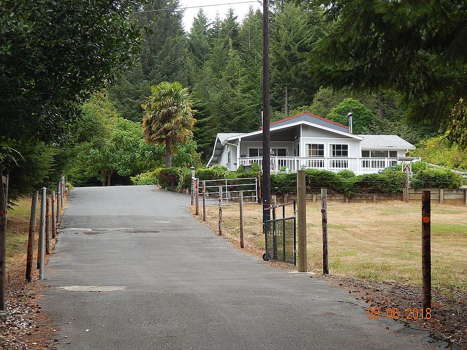 Awesome horse property on the coast! Nicely updated 3 bed 2 bath ranch house, 6 stall barn, huge shop, covered rv parking, and separate mini barn in the smaller field all sitting on almost 3 acres of fully useable fenced and cross fenced land. House has heat and ac, covered front porch that wraps around the front. Attached garage. Laminate wood flooring and tile throughout house. Beautiful mature landscaping, can hear the ocean and see it from the top of the property. Property borders 30 forested acres with neighbors only barely visible on two sides for very private feel. Upper back portion of property has been logged in preparation for an arena to be built, but we have simply outgrown this beautiful property and home. Home has newer roof, updated vinyl double pane windows, vaulted ceilings and beautiful views. Shop has 220. Water spigots to all outbuildings. Huge play set can come with property. Both front and back driveways are gated. Well, chicken coop (can come with two young laying hens) and paved driveway.