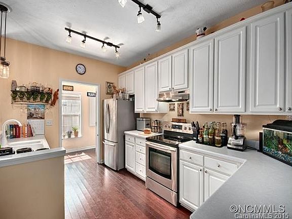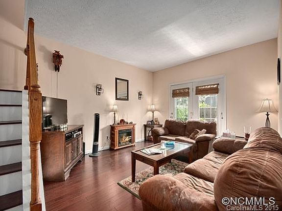 Town home with many updates including beautiful wood flooring on both levels, new light fixtures, & stainless appliances. Open floor plan, bright sunny laundry room on main, glass door to back deck, &covered front porch. Master suite w/garden tub, separate shower, and double sinks.Winter views of downtown from upper level. Single garage on main. Approx 5 minutes from downtown Asheville, the River District, and West Asheville. Pets and rentals ok!