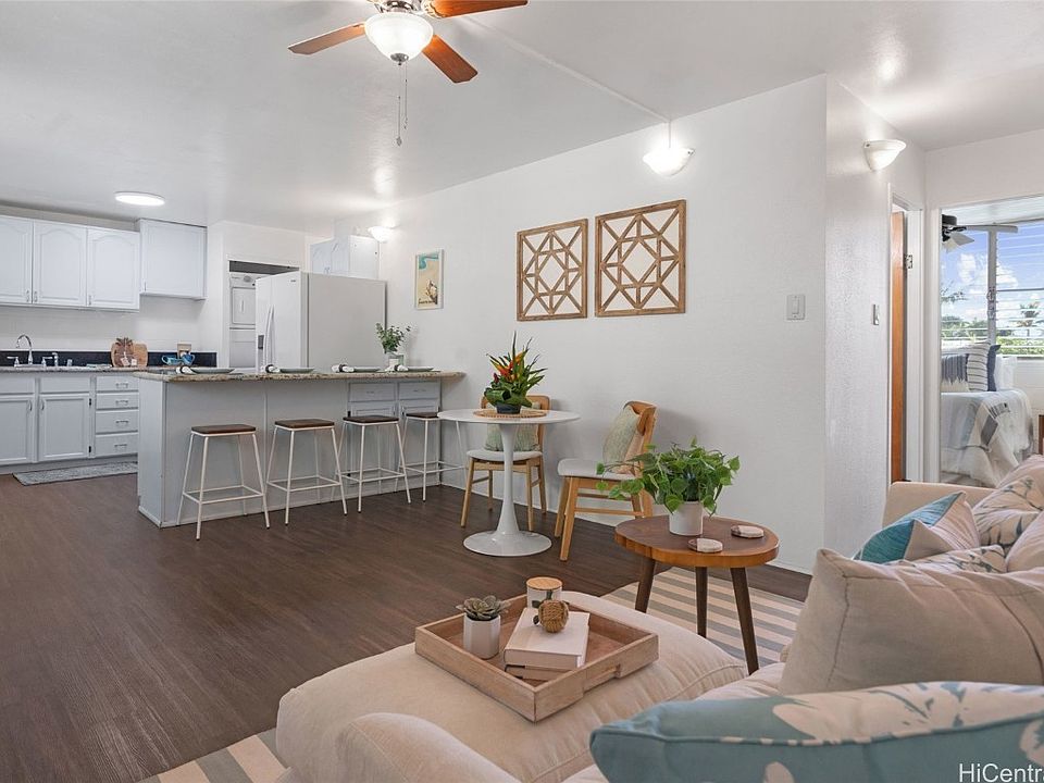 Discover a rare gem at Mokuleia Beach Apartments in the tranquil Waialua community on the North Shore. This generously sized 2-bedroom, 2-bathroom condo is ideally situated just one block from the breathtaking Waialua Beach. Boasting nearly 200 square feet more than most other units, this condo provides ample room for relaxation. Inside, you'll find a bright and airy space, freshly painted to create a welcoming atmosphere. The seller has upgraded the floors, cabinets, ceiling fans, washer. dryer. microwave, oven and added trim! Unit includes 2 assigned covered parking stalls. Whether you're seeking a permanent residence or a vacation retreat, this property offers the perfect combination of comfort and coastal charm. Don't miss the opportunity to own a slice of paradise and embrace the North Shore lifestyle! *Option for 3.125 % VA assumption loan! Buyers must have their own VA eligibility.