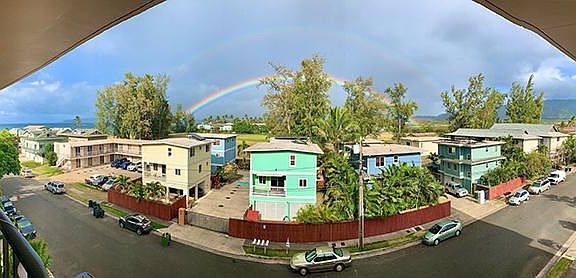 This pet friendly, 2 bedroom and 1.0 bathroom condo is located steps away from a stunning sandy beach with fifth story patio views of the ocean and lush green mountains. Located in the town of Waialua, it's a 2 min walk to the beach, 5 min drive to historic Haleiwa town, and a 35 minutes drive to the capital of Honolulu. The 788 sq foot two story condo includes two AC units, dishwasher, microwave, stove oven, full-size refrigerator, washer and dryer. The complex includes a large community pool and sauna. Additionally, there is one designated space in the complex parking lot next to the elevator. A 5 minute walk through the beautiful neighborhood takes you to Aweoweo Beach Park which has a basketball court, playground, showers, bathrooms, and BBQs. The beach is perfect for swimming, kayaking, surfing, and snorkeling with tropical fish and sea turtles. A nearby bike path is ideal for a short run or bike ride to the Waialua town center. Watching sunrise from the patio and the sunsets from the beach truly complete the northshore lifestyle! Renter pays electric, cable, wifi.