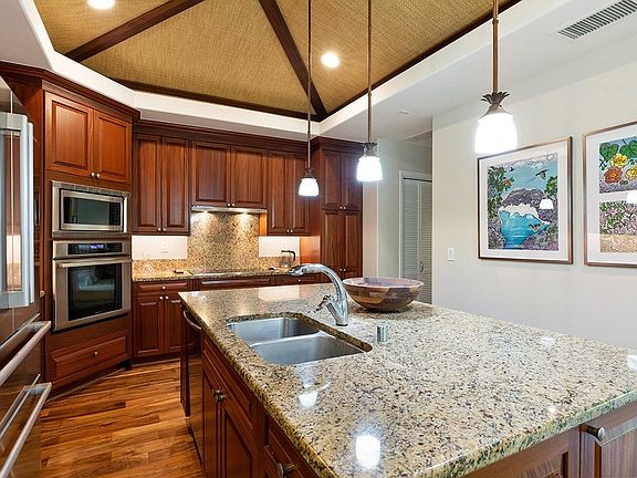 Kitchen and Master suite with Grass Cloth Ceiling and Mahogany trim