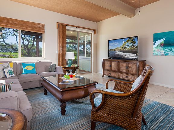 This 3 bedroom home is fully furnished with a Main Floor Master Suite with King size bed and large private ensuite. The second bedroom features a queen bed and the third bedroom with (2) twins that can be joined to make a king (complete with proper King mattress topper). The home also has a queen size sleeper sofa complete with 3" gel toppers allowing for parties of up to 8 people. We also include a pack and play for families with young children and can provide additional ones if families have more than one infant. The airy open concept main floor includes kitchen, dining area, living room, and large lanai with outdoor kitchen. The dining room table will comfortably accommodate 8 people plus another 4 at the lanai outdoor table, or 4 at the expansive kitchen counter. Relax and enjoy watching your sports team or a movie with the kids after a fun day at the beach on the large 65" 4K TV. Enjoy movies and music selections on the sound-bar, watch the game, or relax with a movie from our complimentary NETFLIX or Apple TV. The main floor covered lanai, equipped with BBQ, chaise loungers, and dining area is a perfect place to enjoy throughout the day. Watch golfers and on many days listen to the distant sounds of the ocean waves. Whether you're celebrating a birthday, anniversary, a new job, retirement, or simply celebrating the sunshine, our home is sure to create a great experience. Beyond building an elegant and comfortable furnished home, we know it's often the small surprises and conveniences that make all the difference. Examples include: High-end luxury mattresses in all bedrooms for your comfort and enjoyment Luxurious high end bedding for all beds Luxurious towels A fully equipped kitchen for all of your cooking, baking and BBQing needs High-end Ninja blender for making great smoothies and other tropical drinks Large selection of vinegars, oils and spices Starter pack of Kona coffee & a collection of teas Popcorn For your day at the Beach: We love building really big sand castles. Kohala sand is exceptional for this and we have the tools for kids and adults alike. For your day at the beach, you'll find: Comfortable beach chairs, beach mats, umbrellas, sand toys and sandcastle making equipment, volleyball and football Large collection of snorkel gear in multiple sizes so you can share the wonders of the ocean Boogie boards to enjoy playing in the waves Life jackets, swim belts for the younger ones Large wheeled cooler and tupperware containers for your beach picnic Enjoy our collection of bikes (adult, youth and kids with helmets and locks) allowing you to explore the Mauna Lani resort. They are great for going to the Private Beach Club, exploring the Black Sand Beach, historical grounds, Fairmont resort hotel or the many other wonderful places that Mauna Lani has to offer. Ask us about deals on a GEM Neighborhood Electric Vehicle (Golf cart) rental for even more family fun. For those with children: Having traveled with our kids when they were young we know how difficult it is to lug all the baby equipment. Our goal is to make your life easier so we have equipped our vacation home with: Portable crib High chair / booster Baby monitors Bed safety rails Things to do: Staying at Fairways at Mauna Lani gives you full access to its Recreation Center with fitness equipment, hot tub and resort style free form pool with keiki (kiddie) pool. You can also take advantage of the clean private beach club staffed with lifeguards and the Napua Restaurant just two miles away. Excellent snorkeling in calm waters! A short drive away are six (6) of the most spectacular beaches in Hawaii including Beach 69, Hapuna beach and the breath-taking Mauna Kea beach. The Kohala coast is a golfer's paradise with seven (7) challenging courses all within 7 miles of our villa. Minutes down the street is the Shops at Mauna Lani where you can find supermarket, coffee shops, restaurants, clothing and accessory stores, art, and free weekly entertainment in the evenings. A short walk or bike ride from Orchid Villa is the Fairmont Orchid Hotel, Auberge Hotel, and the Mauna Lani Bay Hotel and Bungalows. Make Orchid Villa your home, extend your conference stay! We would like to welcome you to our villa, and we are happy to answer any questions you may have. Aloha! AVAILABLE: Immediately through June 1, 2021 Monthly rate : $5000 per month Electrical utilities extra Minimum 31 day rental. Community rules regarding noise and parking. Hawaii Taxes Separate (GET 4.712% plus Transient Accommodations Tax 10.25% - TAT if less than 180 day lease). Hawaii Taxes Separate (GET 4.712% plus Transient Accommodations Tax 10.25% - TAT if less than 180 day lease). Departure clean of $295 plus applicable taxes