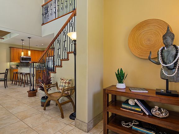 The end-unit townhome floor plan, (no one above or below), is flexible with bedroom #1 on the ground floor & a roomy 2nd floor Primary Suite where you can unwind or wake up to tropical views on its private lanai!