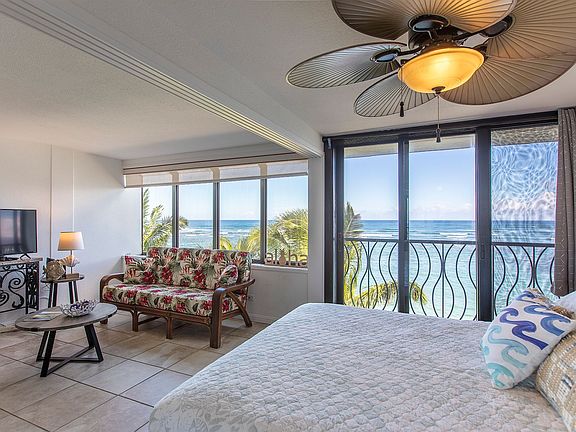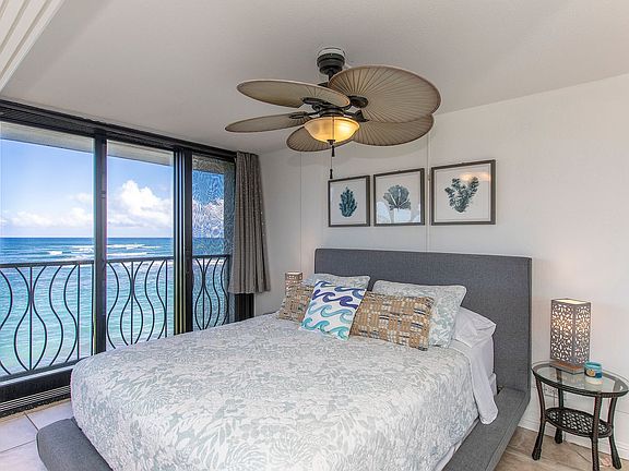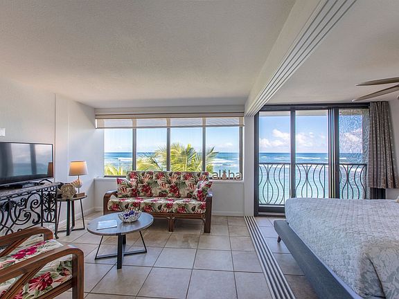 Furnished 2 bedrooms, 2 bath condo with 1 assigned parking stall, granite countertops and breakfast bar, washer/dryer, tile flooring, carpet in the master bedroom. Sweeping ocean views, perfect for whale watching. Secured building with natural saltwater pool, spa, BBQ, private access to a sandy beach. Minutes from Historic Haleiwa Town and The Waialua Shopping Center, Farmer's Market, and more. Near bus line, and approx. 40 mins to HNL Intl Airport with no traffic.