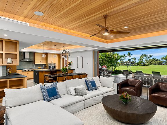 Upon entering you are greeted with a stunning panoramic view overlooking the infinity- edge pool, out to the 1st green of the Mauna Lani South Course, and to the Pacific Ocean nearby. Seamless indoor/outdoor living with an abundance of light to entertain, dine, and relax.
