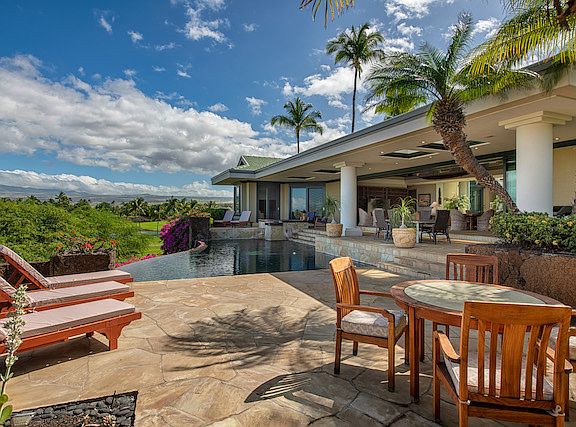 Classic Lucky Bennett architecture and quality Maryl construction, in this dramatic home overlooking the 16th fairway of Mauna Lani's North course. Three bedroom suites plus office and media room. Vaulted open beam ceiling in the great room with natural light from the sky light that graces the length of the room. Stone floors, Koa cabinets, double glass entry doors, deep lanai and infinity pool with spa and waterfall. Fully furnished with many Koa pieces. Short term vacation rentals are permitted at Champion Ridge and Lot 24 has a STVR permit although Seller is not currently renting.<br><br>Views of the Kohala mountains, Maui, Mauna Kea, the fairways and even a peek of the ocean. <br><br>Champion Ridge is a mature, serene, residential, gated community, elevated above the surrounding fairways for the ultimate privacy. The amenity center is a garden with fruit trees for the community to share. Centrally located a short drive to the Auberge, the golf clubhouse, the Shops, the Spa, and the Beach Club.